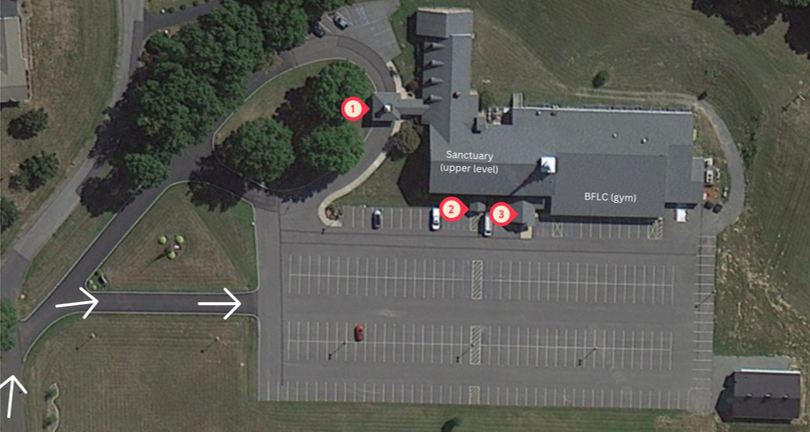 When you arrive, most people will park in the lower parking lot (handicap parking available to the upper level). You may take the sidewalk up to the main entrance (upper level), or you can enter through one of our lower-level entrances. The bottom level will provide direct access to the nursery and the Sunday School rooms. There is an elevator at the bottom of the stairs to take you up to the main floor. If you take the stairs up, you will enter our lobby, where you will find the information desk and our greeters waiting to welcome you. Bathrooms are located on both the upper and lower levels. If you have any questions, please don’t hesitate to ask a greeter.